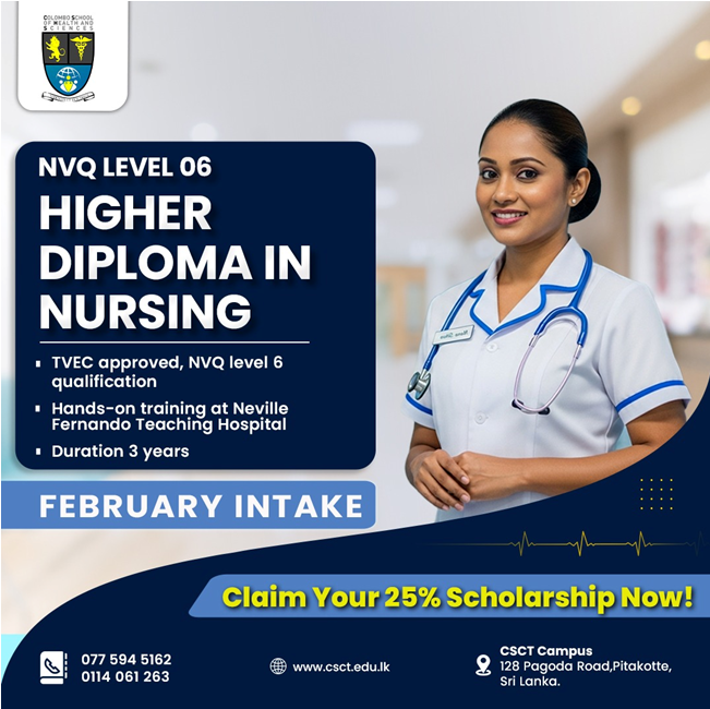 The NVQ Level 6 Higher National Diploma in Nursing offered by Colombo School of Health and Sciences (CSHS) is a nationally accredited professional qualification designed to produce competent, compassionate, and confident nurses ready to serve in diverse healthcare environments.